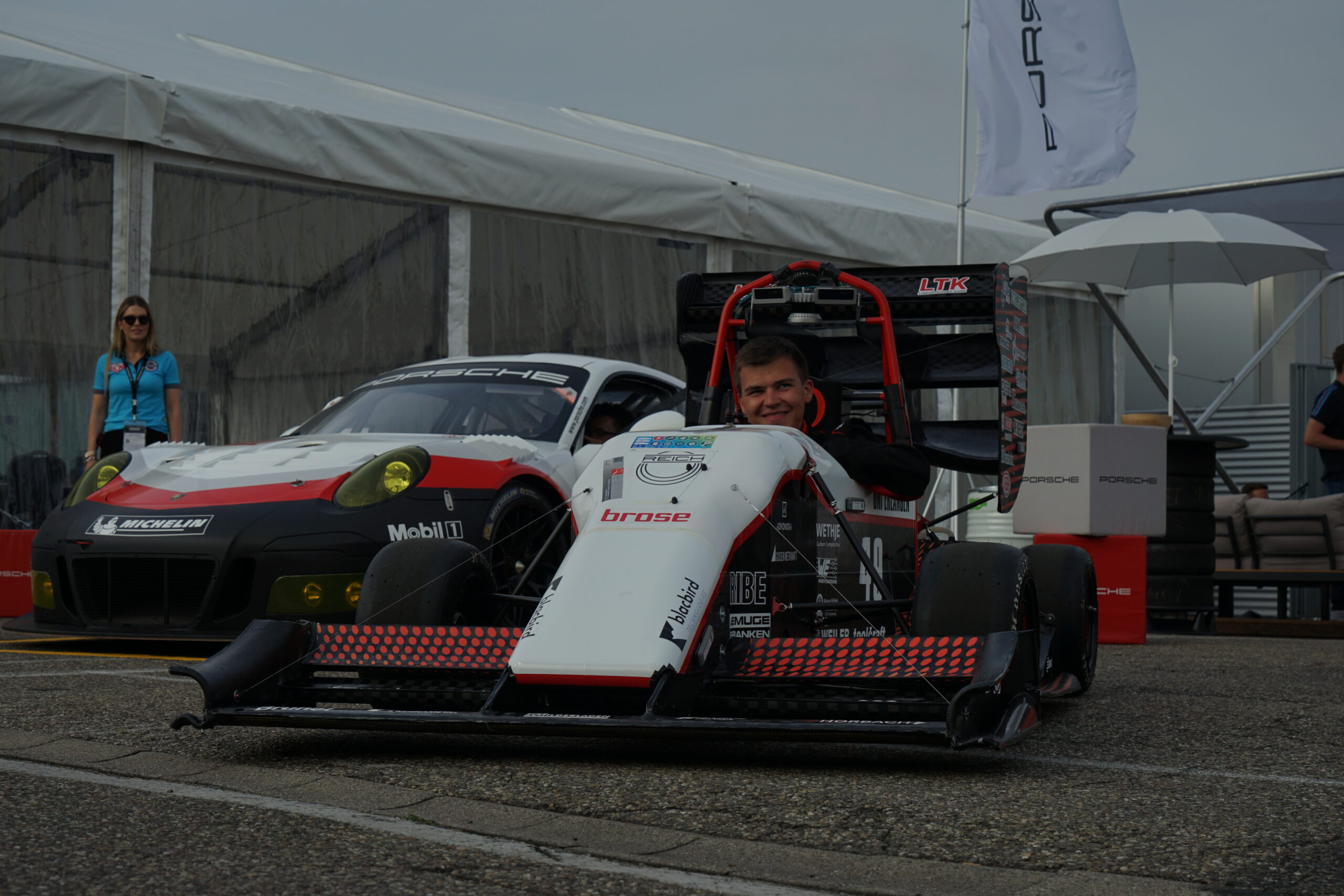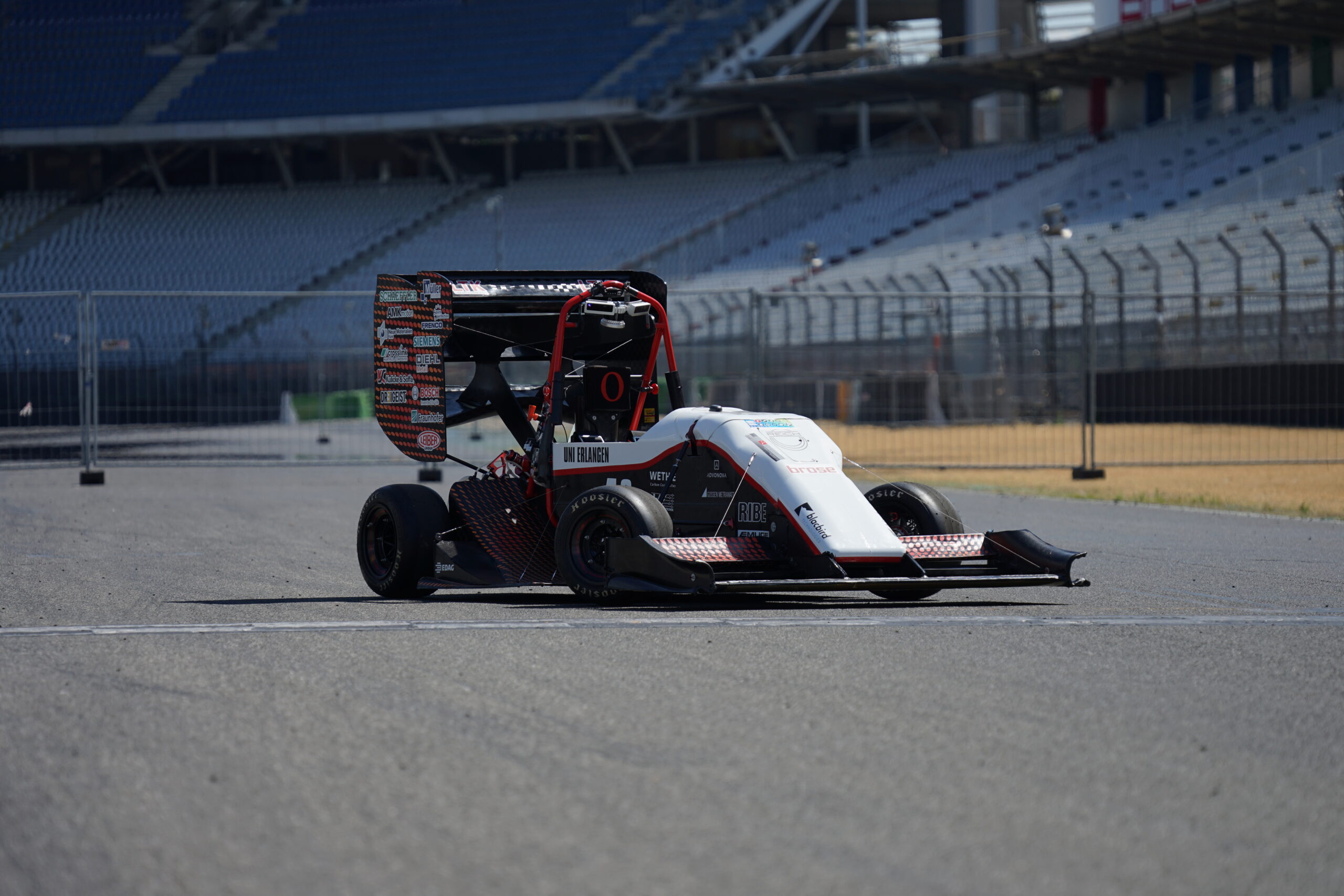 Besonderheit in diesem Jahr ist unser aktives Fahrwerk. Dabei werden Elektromotoren in den Dämpfern eingesetzt. Die translatorische Bewegung der Umlenkhebel wird dabei in eine rotatorische Bewegung im Rotor des Dämpfers umgewandelt. Über regelbare Widerstände lassen sich so während der Fahrt die Dämpferkonstanten für jedes Rad dynamisch und unabhängig einstellen. Somit müssen keine Setup Kompromisse mehr vor der Fahrt getroffen werden, sondern es ist möglich während der Fahrt aktiv auf die aktuelle Fahrsituation zu reagieren.